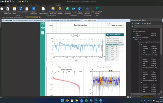 Wyniki z profilometru można bezpośrednio przenieść do dokumentacji jakościowej i porównać z wymaganiami rysunkowymi.