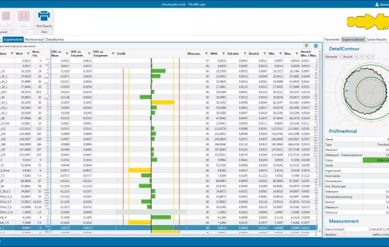 TOLARIS Optic pozwala zbudować plan pomiarowy poprzez wybór cech z listy i przeciągnięcie ich na kontur detalu, z pomocą kreatorów prowadzących użytkownika krok po kroku.