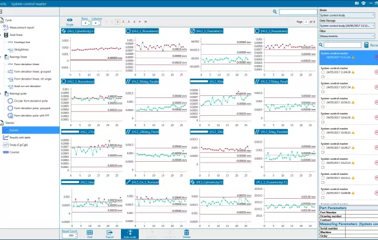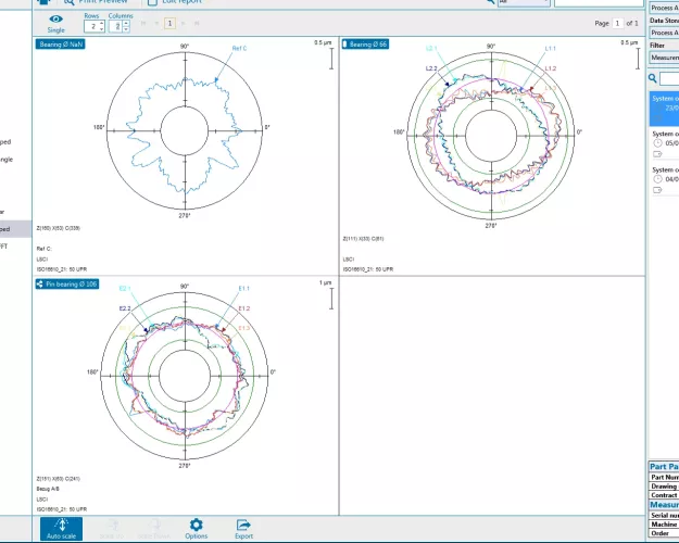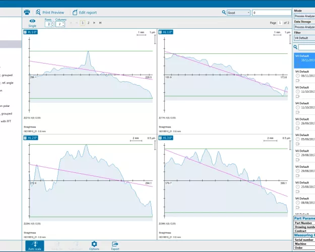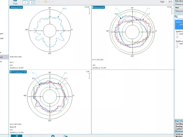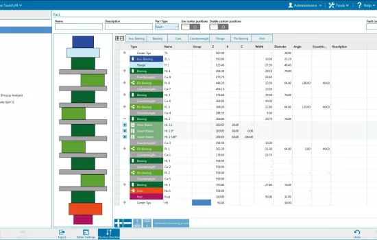 Wbudowany kreator pozwala w kilka minut zbudować plan pomiarowy, prowadząc użytkownika przez wybór i rozmieszczenie charakterystyk na wałku.