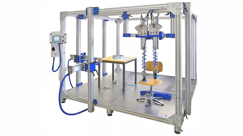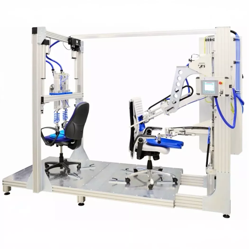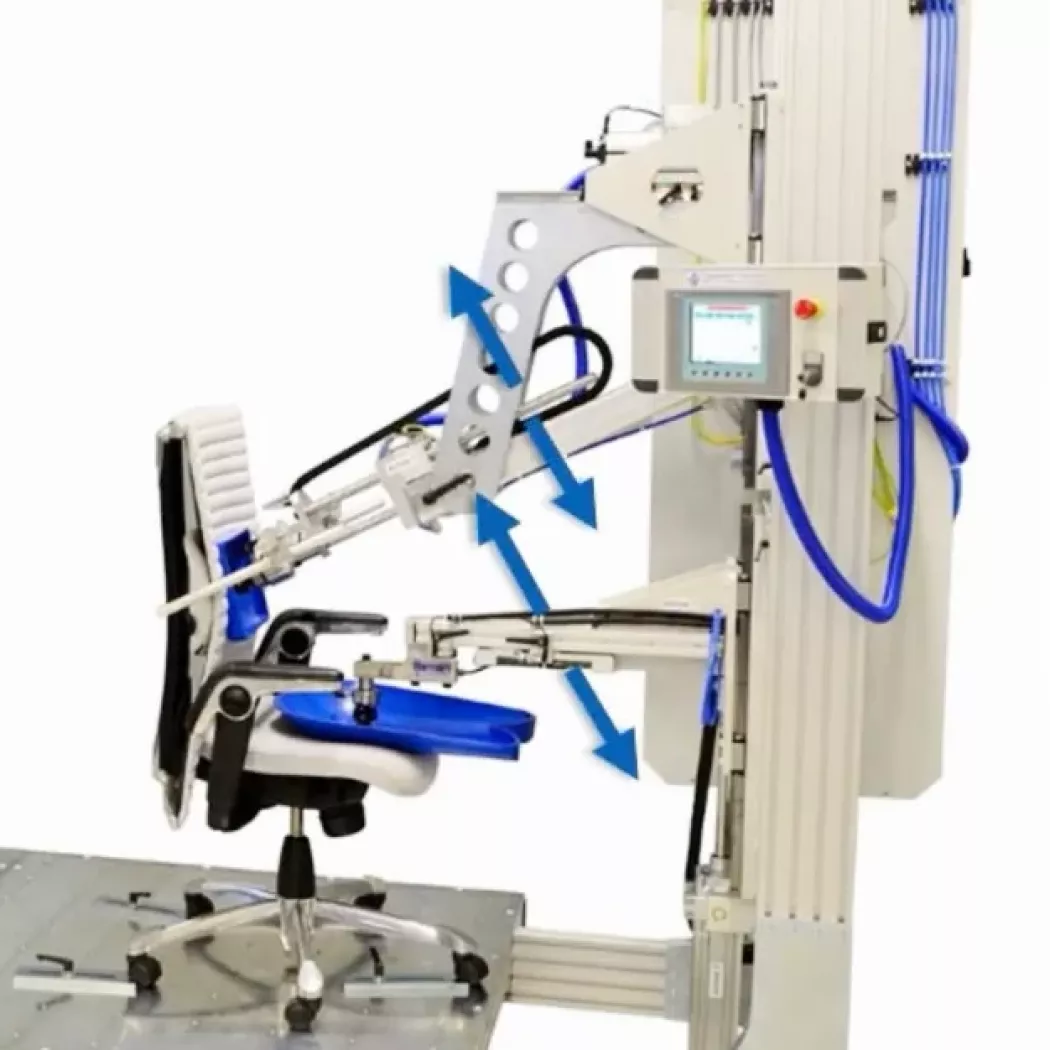 Stanowisko jest wyposażone w sterowane siłowniki pneumatyczne lub elektryczne, które mogą działać synchronicznie lub niezależnie. Umożliwia to odwzorowanie rzeczywistych warunków użytkowania stołów, foteli, krzeseł i innych mebli, poprzez poddanie ich sile nacisku, skręcaniu czy poprzez uderzanie.