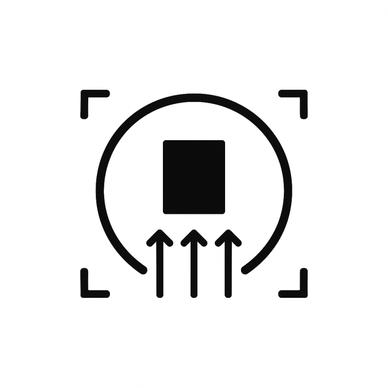 Zastosowana optyka telecentryczna eliminuje błędy wynikające z perspektywy i różnic wysokości próbki. Każdy punkt kadru jest ostro odwzorowany niezależnie od położenia w polu widzenia.